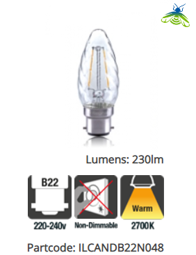 Be the first to review “Integral Candle Filament Twisted Omni Lamp B22 2W (25W) 2700K 230lm Non-Dimmable”